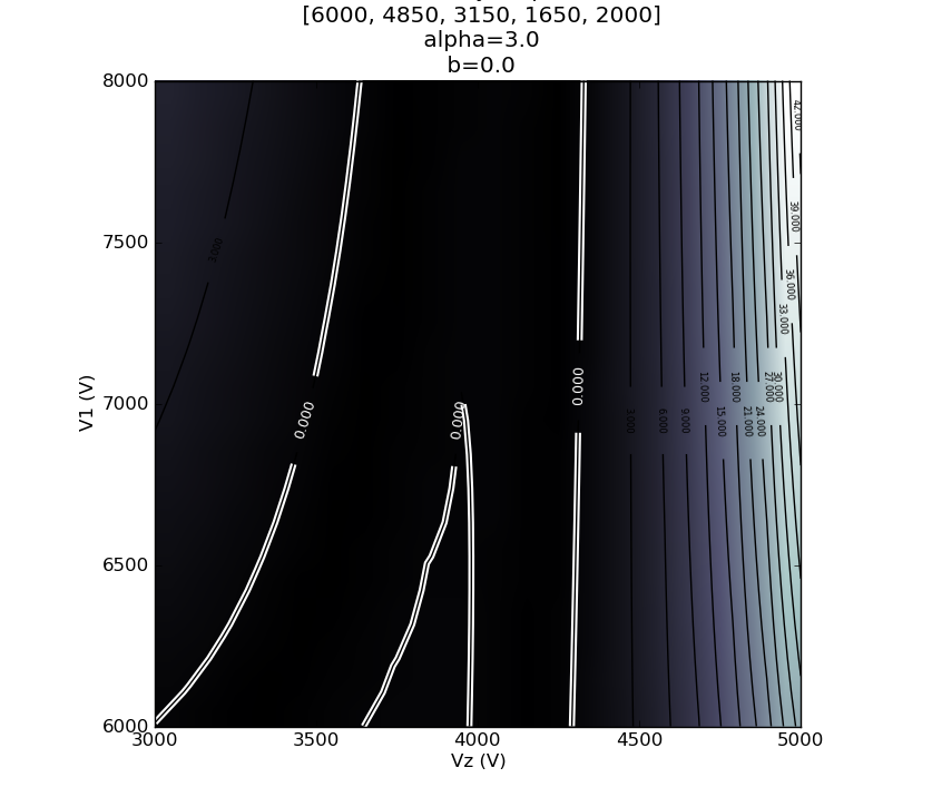 >>> setup = Setup(V=[6000, 4850, 3150, 1650, 2000], ener = 4200, alpha=0.6)